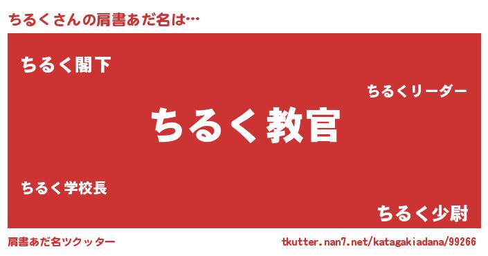 | 男性向けラノベタイトル風あだ名 | 『魔弾の王とちるく』 |