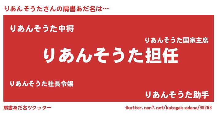 | 意味不明あだ名 | 『永久保存りあんそうた』 |