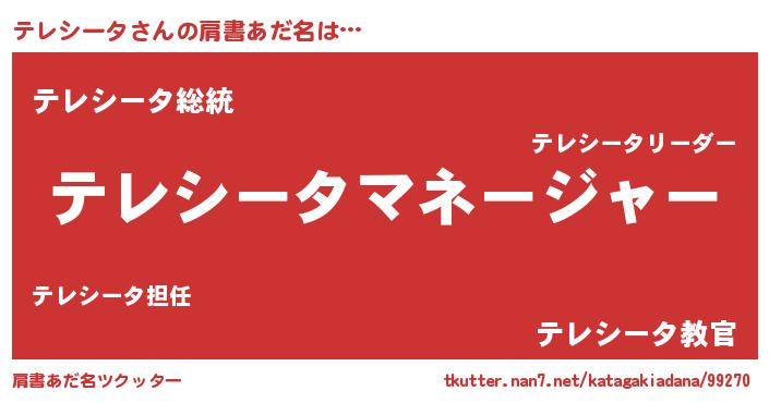 | 意味不明あだ名 | 『自称テレシータ』『永久保存テレシータ』 |
