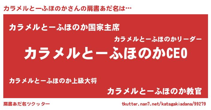 | 男性向けラノベタイトル風あだ名 | 『カラメルとーふほのかの憂鬱』 |