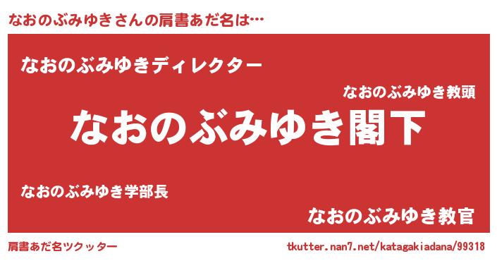| 意味不明あだ名 | 『自称なおのぶみゆき』 |