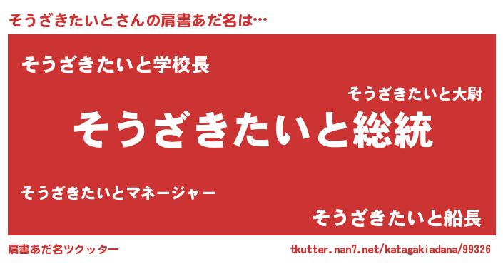 | 意味不明あだ名 | 『自称そうざきたいと』 |