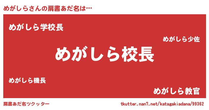 | 意味不明あだ名 | 『永久保存めがしら』『ペロリンめがしら』 |