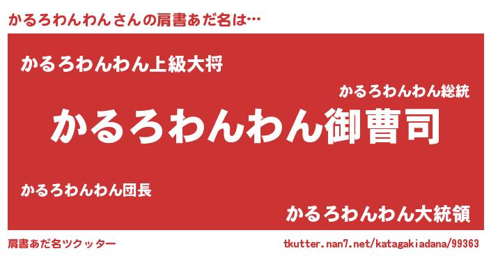 | 胡散臭い通販商品みたいなあだ名 | 『モテモテ間違いなし霊験あらたかなお札…その名も「かるろわんわん」』 |