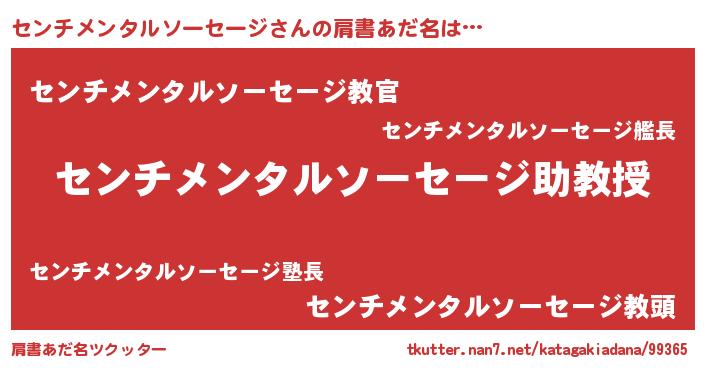 | 女子向けラノベタイトル風あだ名 | 『センチメンタルソーセージ恋絵巻』 |