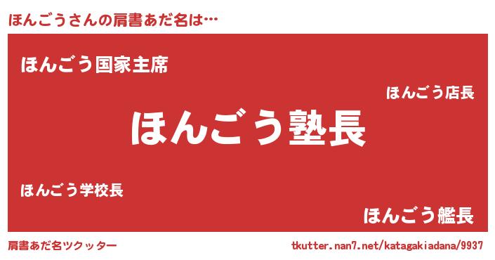 | ポケモン風あだ名 | 『ヒホンゴウ』『ホンゴダネ』 |
