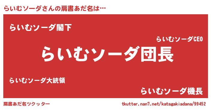 | 意味不明あだ名 | 『とにかく怪しいらいむソーダ』 |