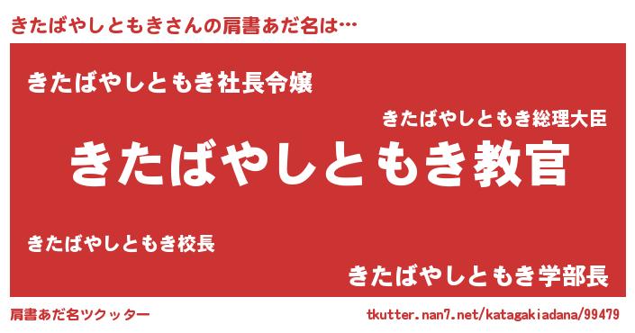 | 男性向けラノベタイトル風あだ名 | 『この素晴らしい世界にきたばやしともきを!』 |