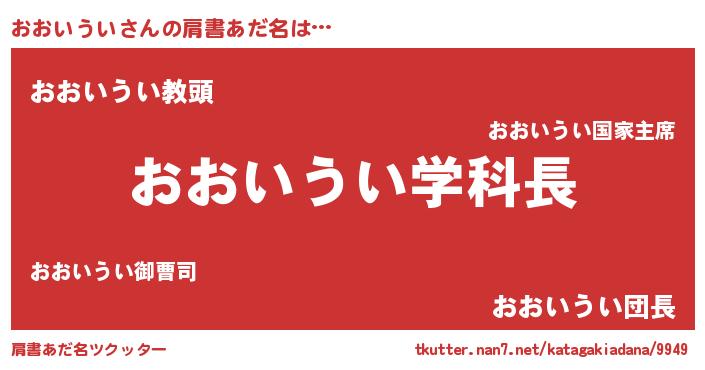 | ヒーロー風カッコイイあだ名 | 『正義の使者おおいうい』『黄金騎士オオ』 |
