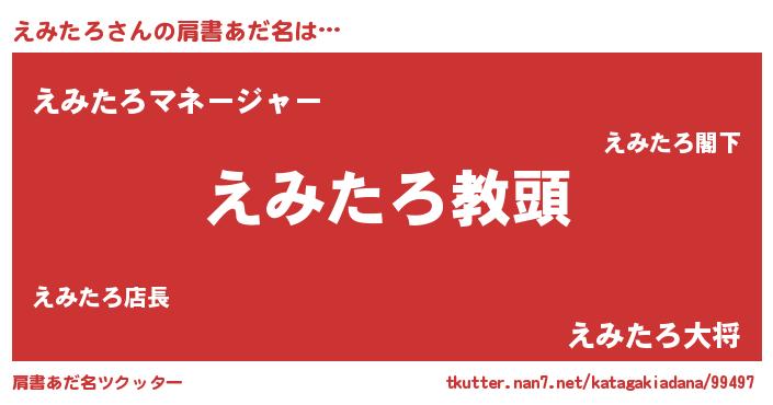 | 意味不明あだ名 | 『永久保存えみたろ』『自称えみたろ』 |