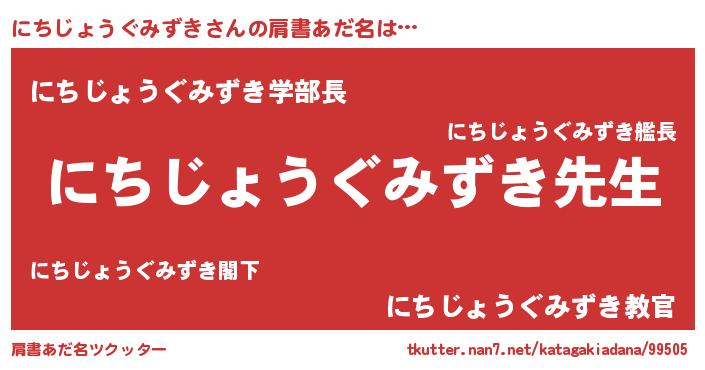 | 男性向けラノベタイトル風あだ名 | 『誰もが恐れるあのにちじょうぐみずきが、ぼくの専属メイドになるようです。』 |