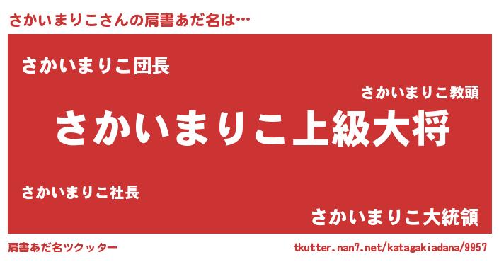 | ヒーロー風カッコイイあだ名 | 『天弓騎士サカ』『ネオサカイマリコ』 |