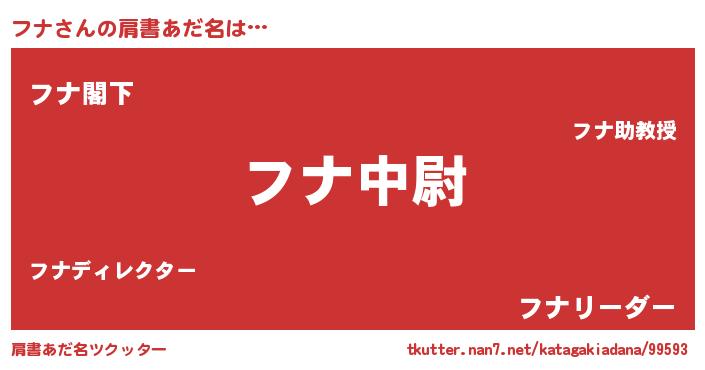 | 男性向けラノベタイトル風あだ名 | 『フナスレイヤー』『はたらくフナさま!』 |