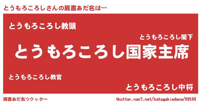 | ファンタジー風あだ名 | 『エターナルトウモロコロシー』 |