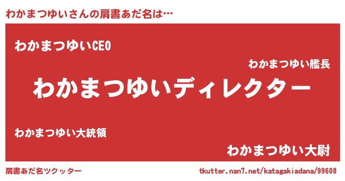 | 男性向けラノベタイトル風あだ名 | 『わかまつゆいに滅ぼされるだけの簡単なお仕事です』 |