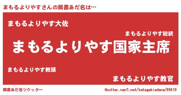 | 欧米人風あだ名 | 『まもるよりやすクリステル』 |