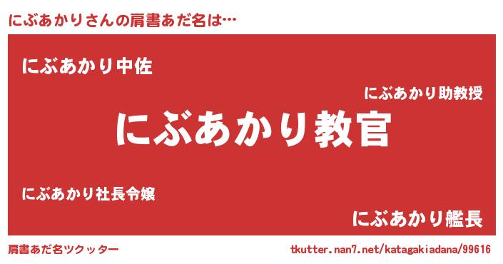 | 男性向けラノベタイトル風あだ名 | 『この素晴らしい世界ににぶあかりを!』 |