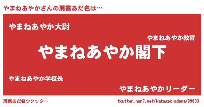 | 意味不明あだ名 | 『自称やまねあやか』 |