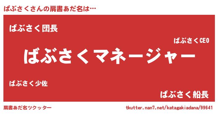 | 男性向けラノベタイトル風あだ名 | 『ばぶさくに滅ぼされるだけの簡単なお仕事です』 |