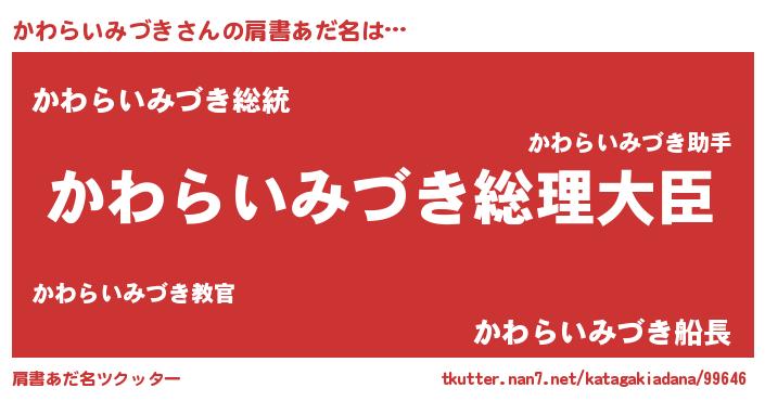 | ファンタジー風あだ名 | 『エターナルカワライミヅキー』 |