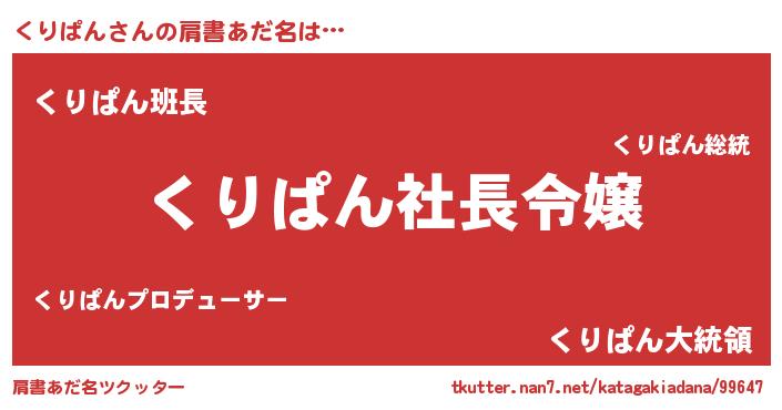 | 胡散臭い通販商品みたいなあだ名 | 『モテモテ間違いなし霊験あらたかなお札…その名も「くりぱん」』 |