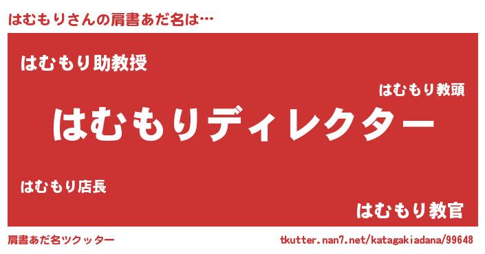 | 男性向けラノベタイトル風あだ名 | 『はたらくはむもりさま!』 |