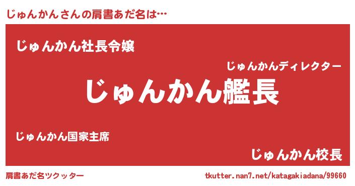 | 男性向けラノベタイトル風あだ名 | 『緋弾のジュンカン』 |