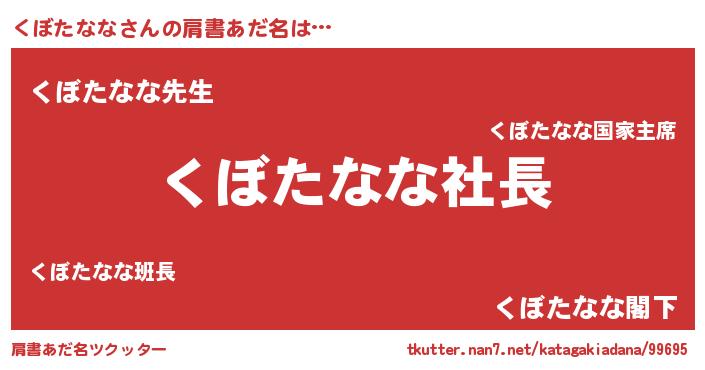 | 女子向けラノベタイトル風あだ名 | 『くぼたなな姫と円卓の騎士』 |