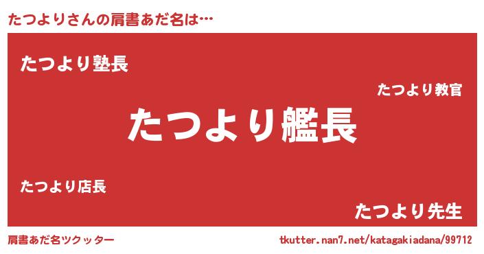 | 男性向けラノベタイトル風あだ名 | 『緋弾のタツヨリ』 |
