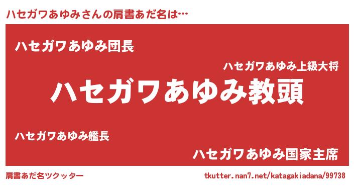 | ポケモン風あだ名 | 『ゼニハセ』『ヒハセガワアユミ』 |