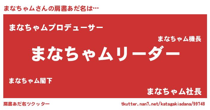 | 意味不明あだ名 | 『とにかく怪しいまなちゃム』 |