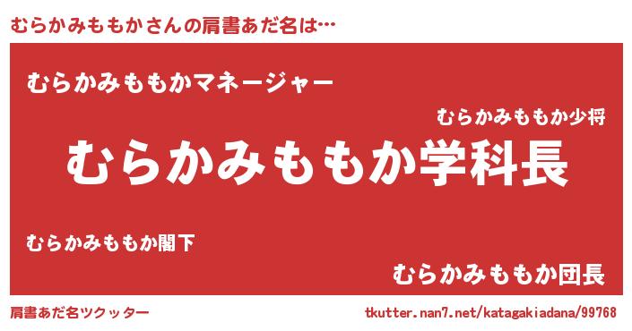 | 女子向けラノベタイトル風あだ名 | 『死神むらかみももかの再婚』 |