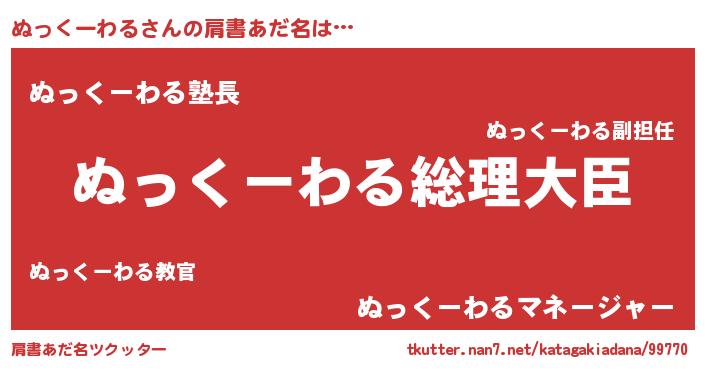 | 男性向けラノベタイトル風あだ名 | 『やはりぬっくーわるの青春ラブコメはまちがっている 』 |