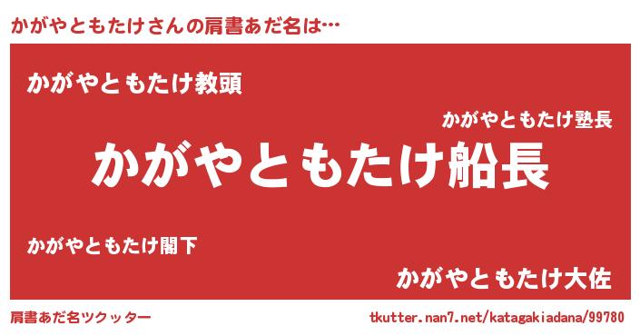 | 意味不明あだ名 | 『永久保存かがやともたけ』 |