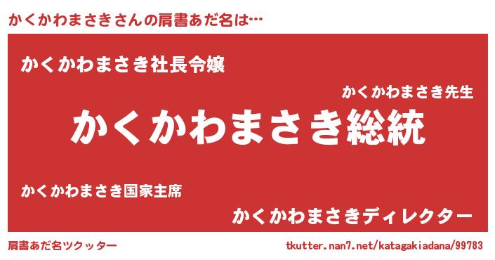| 伝説のあだ名 | 『伝説のスナイパーかくかわまさき』 |