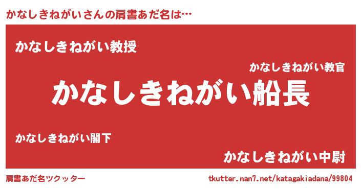 | ヘコむあだ名 | 『かなお』『かなしきねがい(笑)』 |