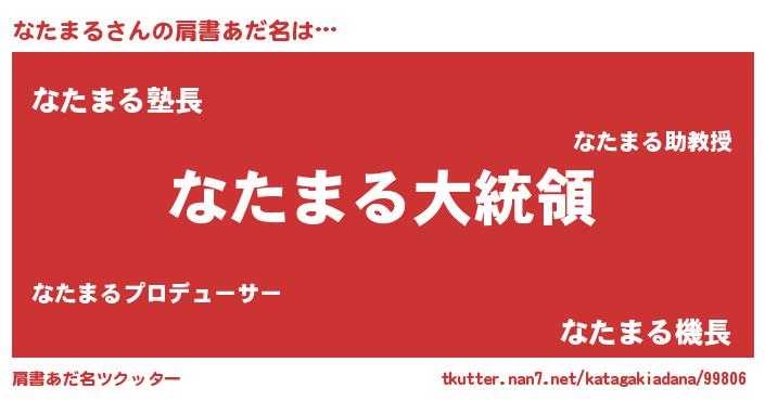 | 意味不明あだ名 | 『なたまるフォーエバー』『自称なたまる』 |