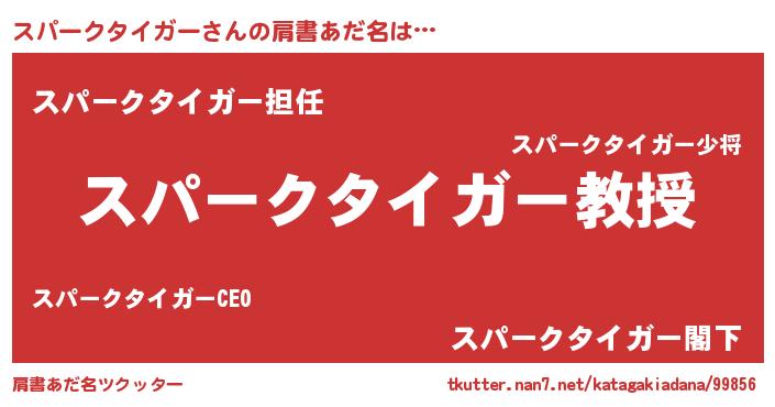 | ヘコむあだ名 | 『スパークタイガー(小並感)』『スパもー』 |