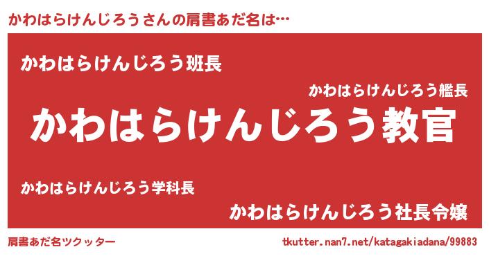 | 伝説のあだ名 | 『解き放たれた遊び人かわはらけんじろう』 |