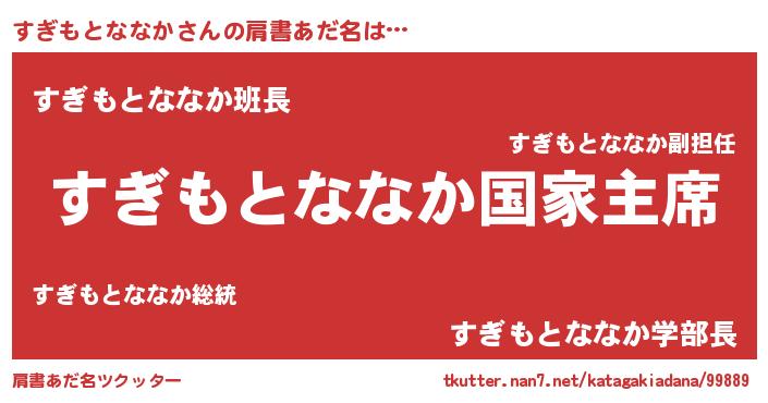 | ポケモン風あだ名 | 『スギモダネ』『ヒスギモトナナカ』 |