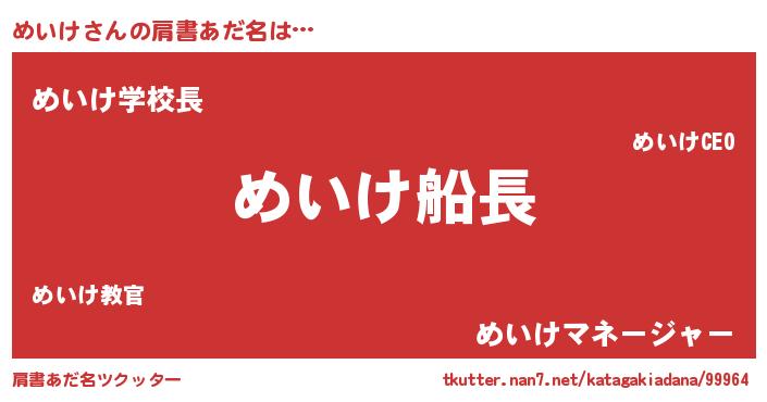 | 男性向けラノベタイトル風あだ名 | 『緋弾のメイケ』『めいけの憂鬱』 |