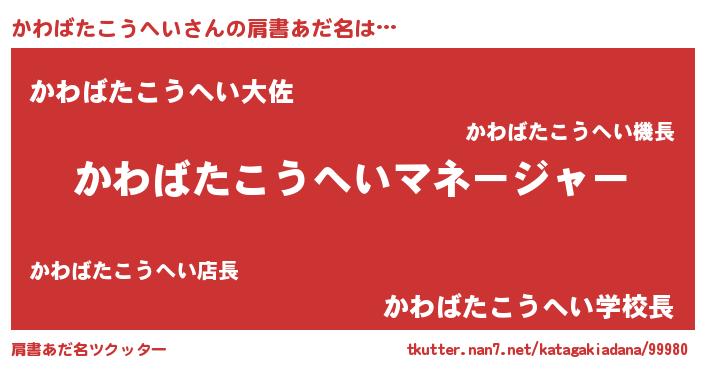 | ヒーロー風カッコイイあだ名 | 『慈愛の使者かわばたこうへい』 |
