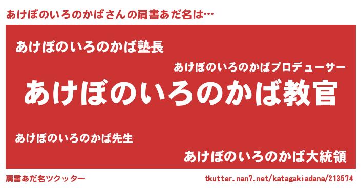 | 男性向けラノベタイトル風あだ名 | 『この素晴らしい世界にあけぼのいろのかばを!』 |