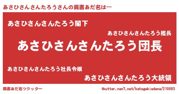 | 男性向けラノベタイトル風あだ名 | 『あさひさんさんたろうの嫁は女の子じゃないと思った?』 |