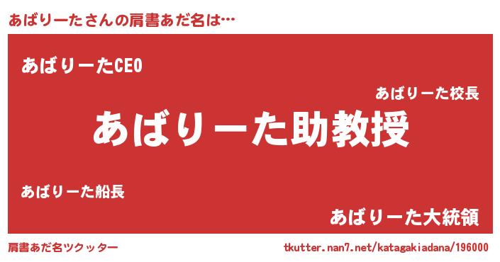 | 伝説のあだ名 | 『救世主となる技術者あばりーた』 |