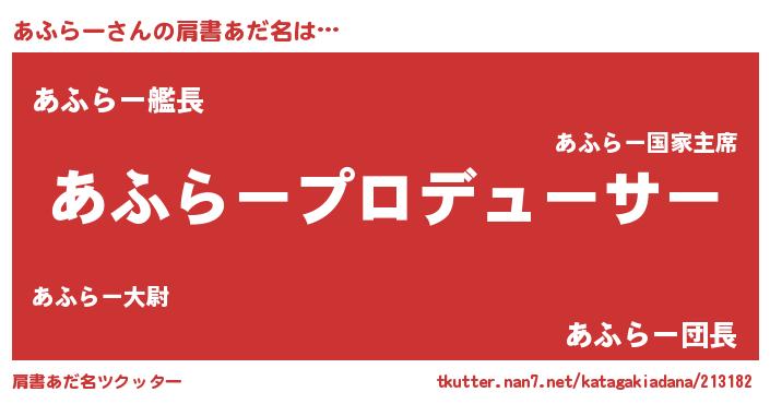 | ヒーロー風カッコイイあだ名 | 『黄金騎士アフ』『ウルトラあふらーマン』 |