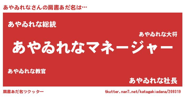 | ヒーロー風カッコイイあだ名 | 『最強戦士アヤヰレナ』『仮面アヤダー』 |