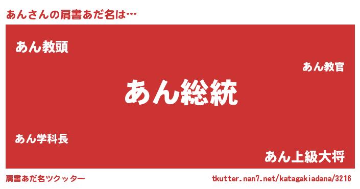 | 意味不明あだ名 | 『自称あん』『永久保存あん』 |
