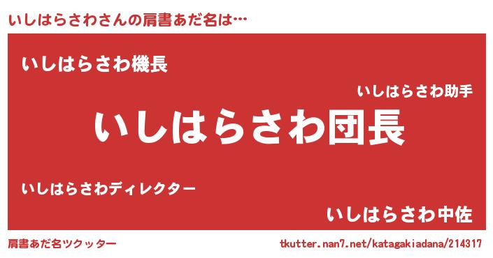 | 男性向けラノベタイトル風あだ名 | 『いしはらさわの嫁は女の子じゃないと思った?』 |
