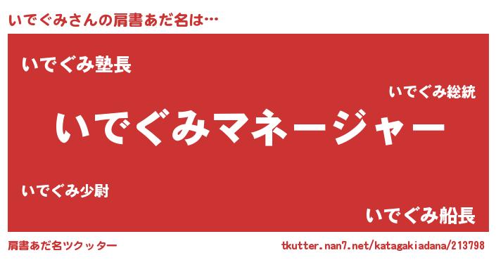 | 男性向けラノベタイトル風あだ名 | 『いでぐみに滅ぼされるだけの簡単なお仕事です』 |